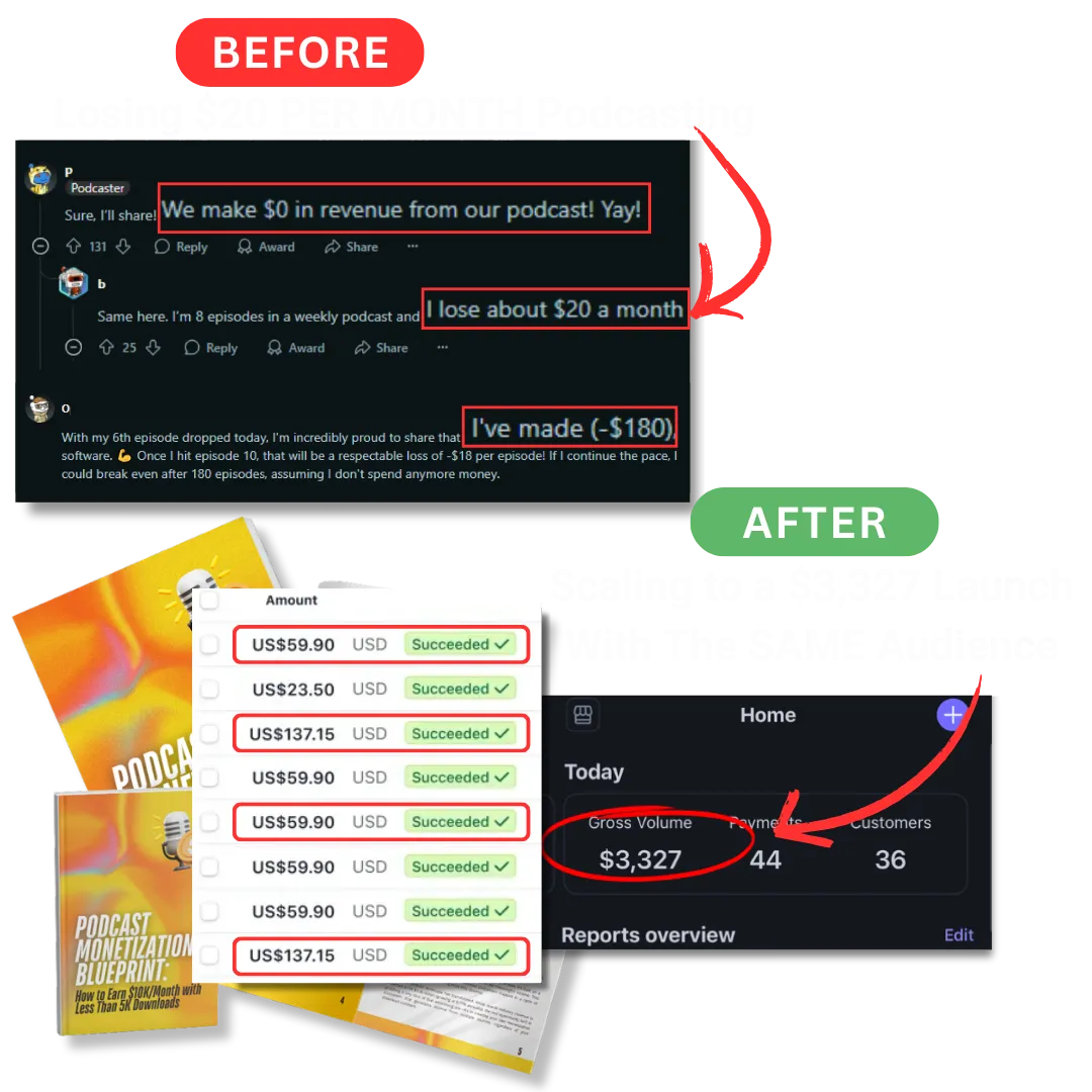 "After 8 months of zero revenue from my podcast, I implemented this system and went from $0 to $3,780 in just 90 days - all while having fewer than 1,500 downloads per episode." - Jamie D.